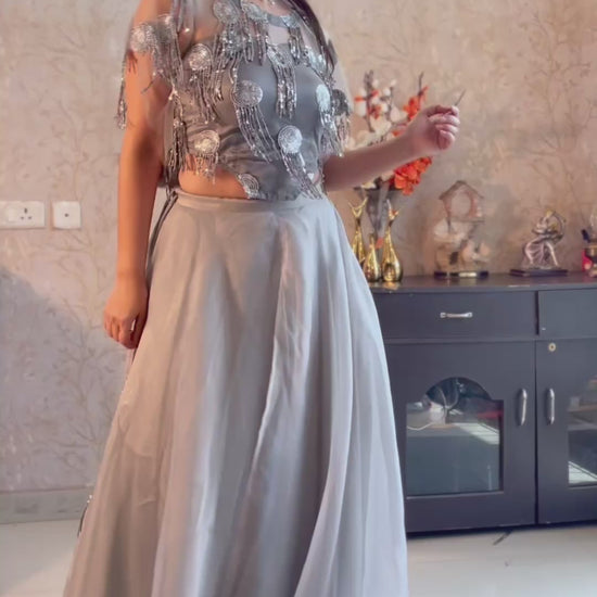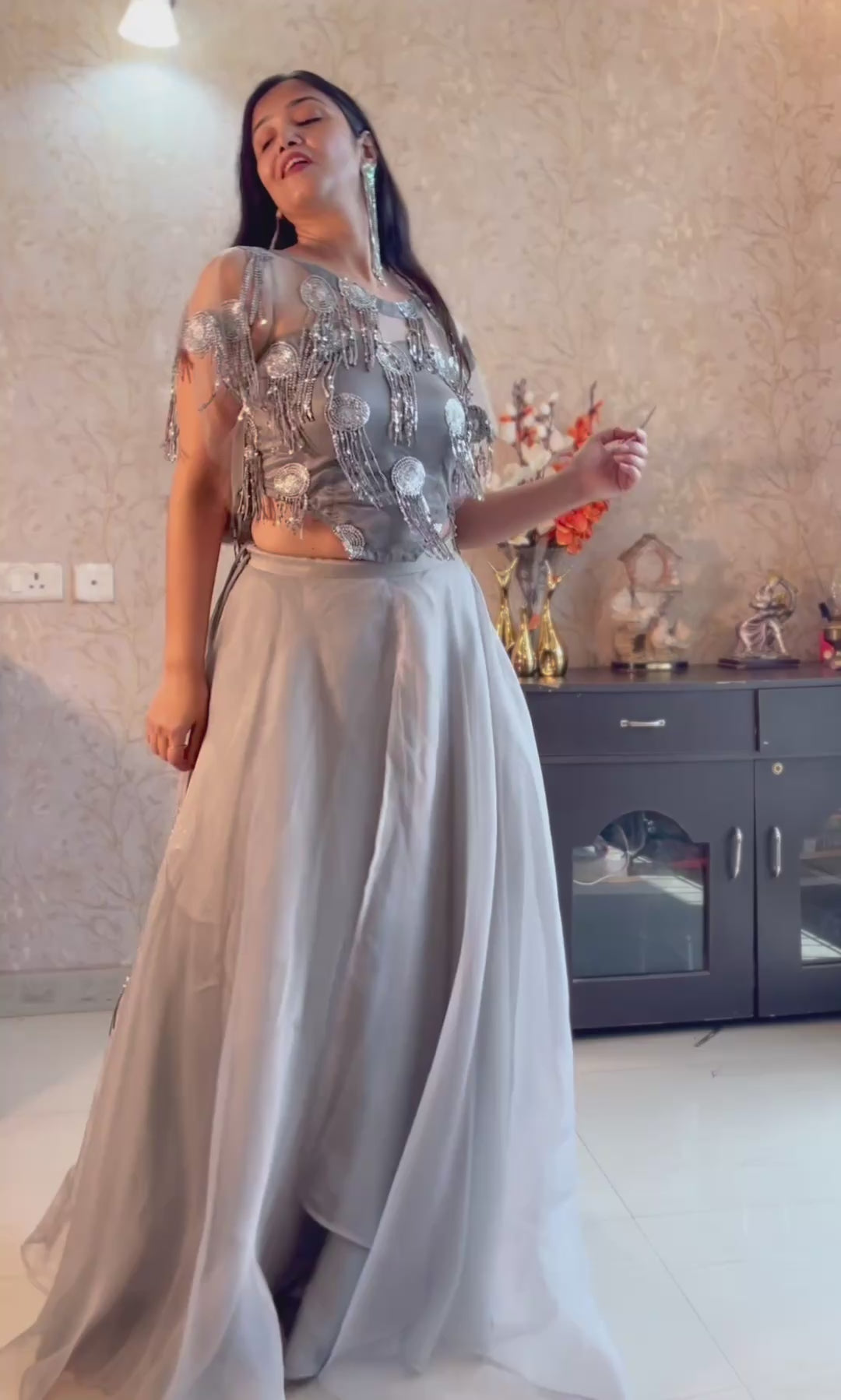 Elevate your wardrobe with this expertly crafted layered full-flared lehnga made from luxurious organza fabric that offers graceful volume and movement. Paired with an intricately embellished net top, this Indo-Western ensemble beautifully balances traditional elegance with contemporary style, perfect for festive occasions and celebrations. The combination of textures enhances the overall silhouette, ensuring a striking look that exudes sophistication and charm.